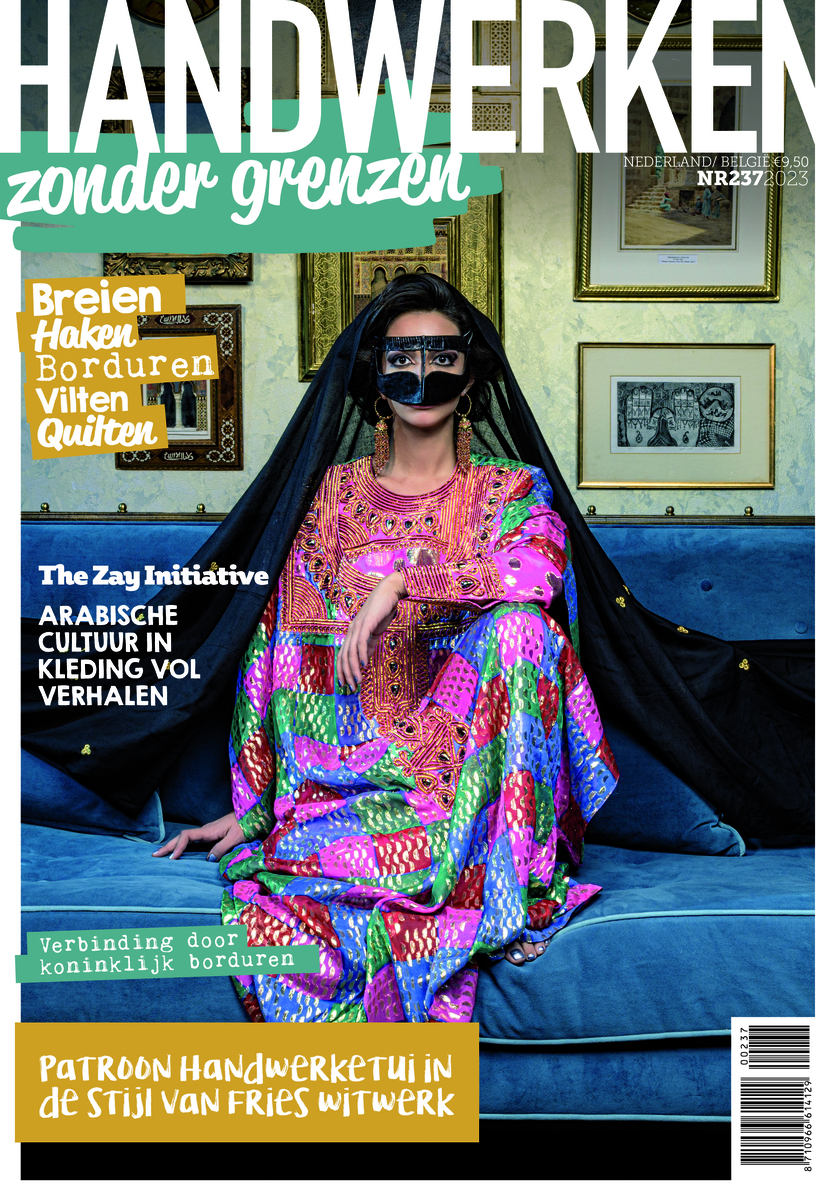 Nu te bestellen: editie 237 van Handwerken Zonder Grenzen. Met op de cover een met metaaldraad versierd overgewaad uit de Emiraten van Dr. Reem Tariq El Mutwalli.
