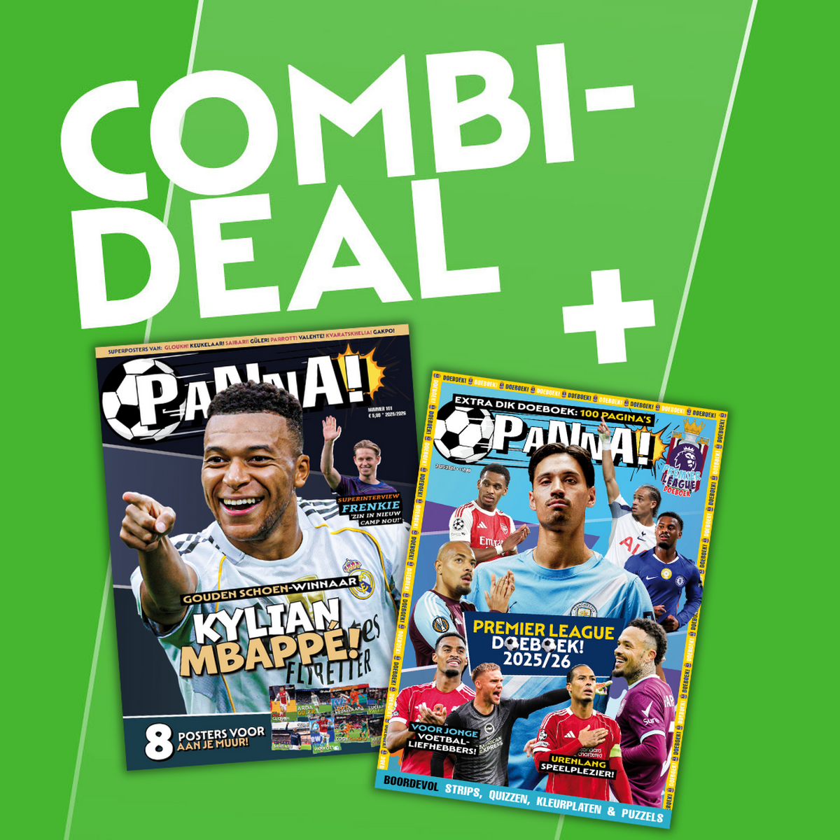 PANNA! Magazine Combi Deal bevat de volgende items: Nu, speciaal voor jou: de PANNA! Combi Deal. Verveel je geen moment met de meest recente special & reguliere editie van het leukste voetbalmagazine van Nederland. Je hoeft er de deur niet eens voor uit, want je bestelt jouw pakket natuurlijk gewoon via onze webshop. Dat is pas chill!